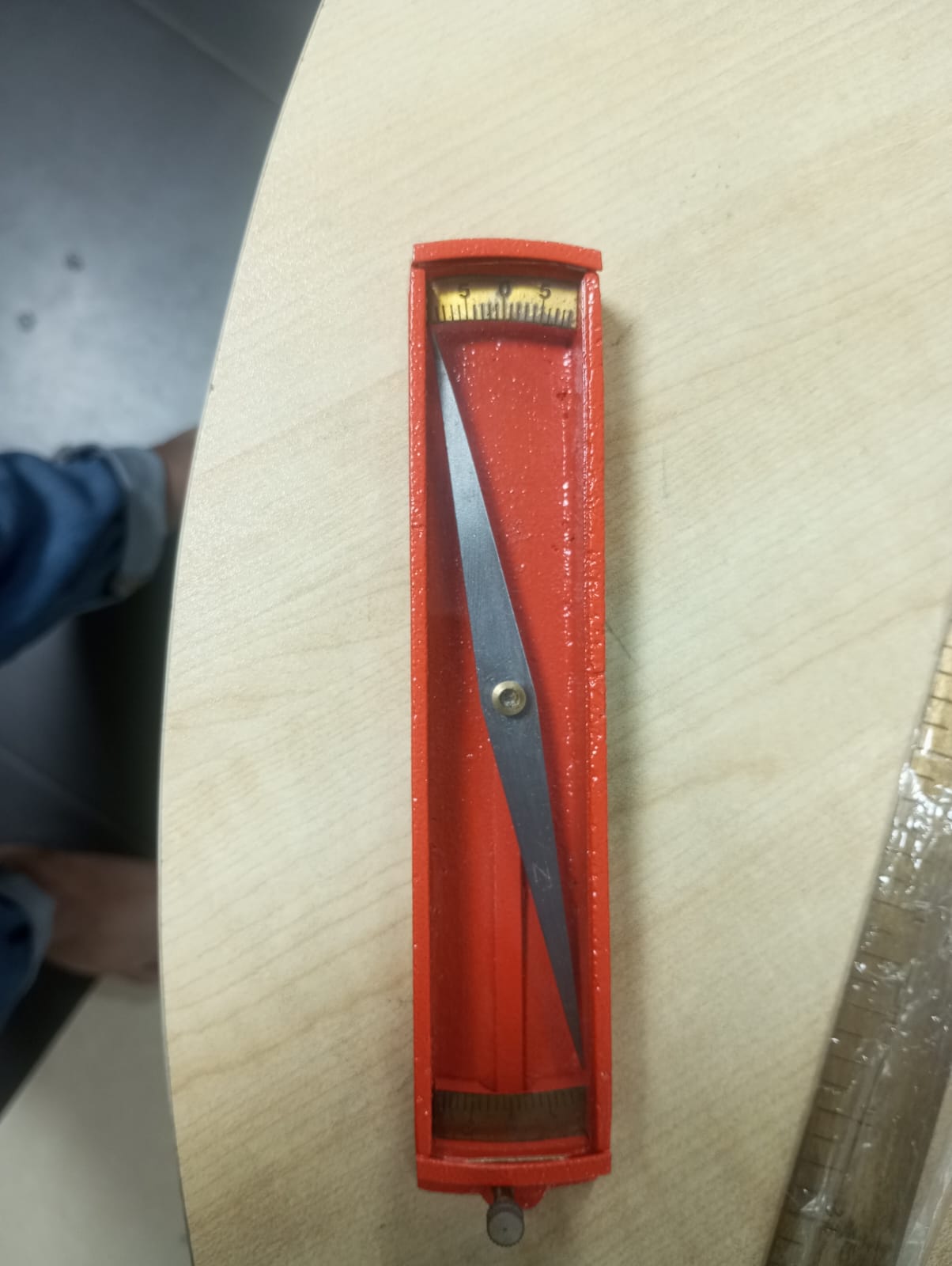 This trough compass is placed on the plane table to help in aligning the table accurately with north-south and east-west directions. Surveyors use it to sight distant objects with known azimuths, aiding in orienting the plane table precisely.