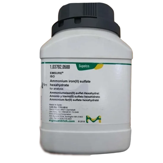 Ammonium iron (II) sulfate hexahydrate analysis EMSURE® ISO is a Laboratory Reagent Grade Chemical.
