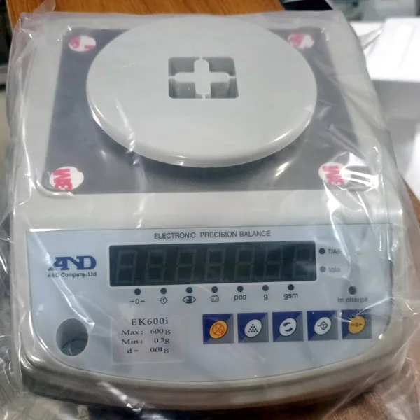 AND EKi Series EK600i GSM and Precision Weight Balance 0.01gm to 600 gm. It is the popular AND EKi Series Precision Weight Balance 600 gm compact balance series that provides a wide selection of capacities and resolutions. This is a very popular scale for schools, colleges, universities, and textile testing laboratories in Bangladesh.