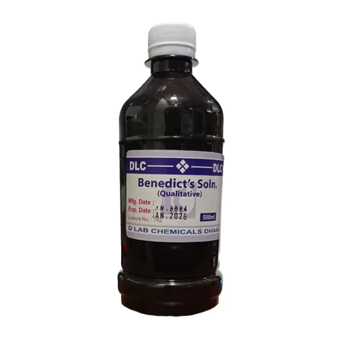 Benedict’s Solutions 500ml is a laboratory reagent for research and analysis. This chemical is a qualitative indicator of the presence of glucose, meaning it indicates the magnitude of sugar concentration.
