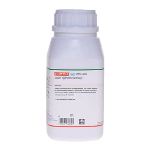 Blood Agar Base with Low pH 500gm Himedia, As a base to which blood may be added for use in the isolation and cultivation of fastidious pathogenic microorganisms like Neisseria, Streptococci, etc from clinical samples.