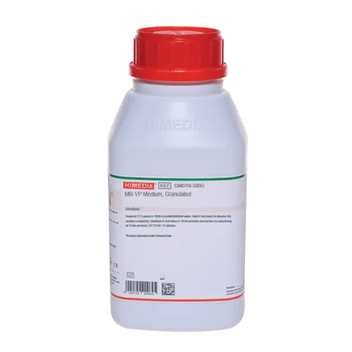 MR-VP Medium also known as Methyl Red-Voges Proskauer Medium, is a selective and differential medium used in microbiology to distinguish between bacteria based on their ability to ferment glucose and produce specific end products. Methyl Red is added to detect mixed acid fermentation, while the Voges-Proskauer test detects the production of acetoin.