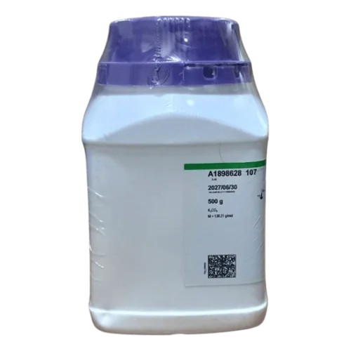 Potassium carbonate (K₂CO₃) is an inorganic compound comprised of potassium and carbonate ions. It typically appears as a white, crystalline solid or powder and is highly soluble in water, creating an alkaline solution upon dissolution. The molar mass of potassium carbonate is approximately 138.21 g/mol.